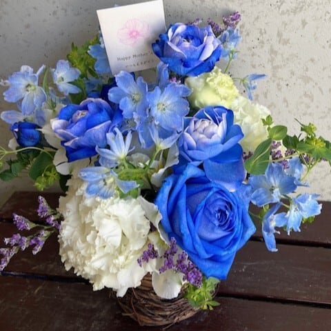 母の日ギフト 生花アレンジメントブルー系Mサイズ
